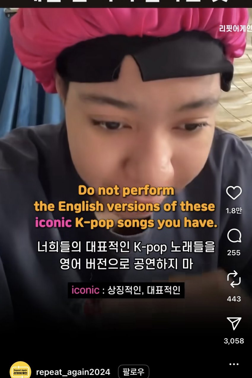 작성자레ㄷ라잇스탑사인넌어때날믿니 작성시간 25.10.26 아 댓글 보고 이해완ㅋㅋㅋ팝가수들리 와서 한국어버전 부르다가면 개킹받을 듯