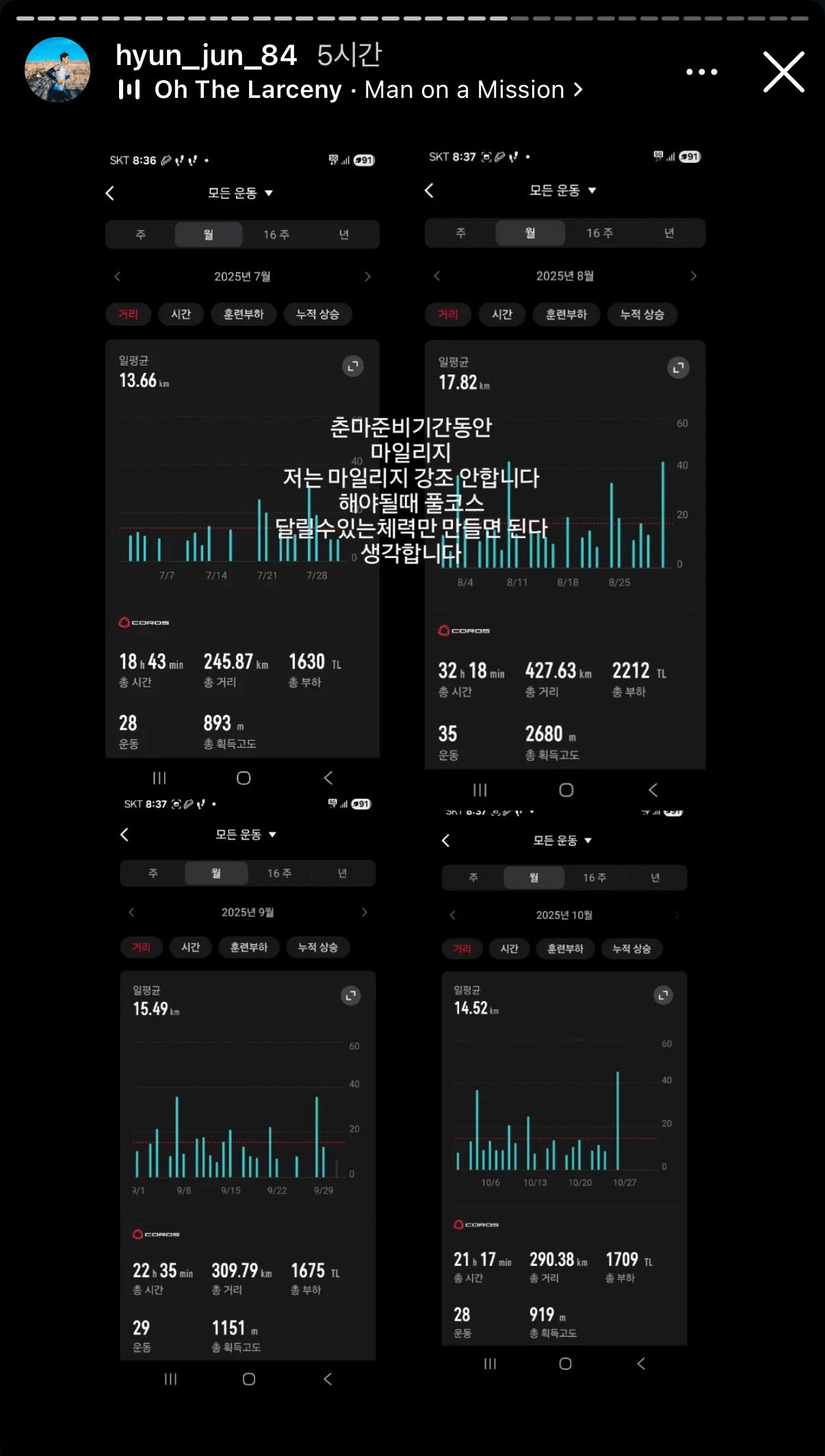 ++ 춘마 준비 훈련하면서 찍은 그의 마일리지 ..