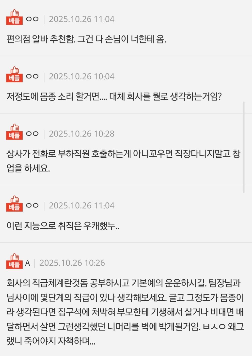 (다른 직원분들은 저에게 할말 있을 때