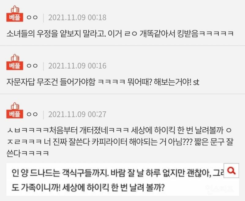 [흥미돋]나 넷플릭스 줄거리 말투 ㅈㄴ 잘따라함 ㅋㅋ 작성자루카걸어다니노|작성시간25.10.27|조회수34,546 목록 댓글 35 글자크기 작게가 글자크기 크게가 출처: 여성시대 루카걸어다니노https://www.instiz.net/pt/7054651나 넷플릭스 줄거리말투 잘따라함ㅋㅋ.jpg이정도면 넷플에서 데려가야 되는거 아니냐고ㅋㅋㅋㅋㅋ(무도 뭔데 울컥해...ㅠㅠ)+) 진짜 찐 넷플릭스 줄거리 ㅋㅋㅋㅋ1차 ㅊㅊ https://zul.im/0Mr1JH2차 ㅊㅊ ㄷㅋwww.instiz.net 다음검색 현재 게시글 추가 기능 열기 북마크 공유하기 신고 센터로 신고 댓글 댓글 35 댓글쓰기 답글쓰기 댓글 리스트 작성자토르막길 | 작성시간 25.10.28 드라마 이해도도 높앝ㅋㅌㅋ 대박 작성자A피치 | 작성시간 25.10.28 넷플릭스 한국지사 직원 아니고...? 넷플 끊은지 오래됐어도 읽자마자 알거같아 ㅋㅋㅋㅋㅋㅋㅋㅋㅋ 작성자카드값줘췌리 | 작성시간 25.10.28 오 작성자소고기먹었지롱 | 작성시간 25.10.28 재능 미쳤다ㅋㅋㅋㅋㅋㅋ 작성자느ㅣ개비최종학력리박스쿨 | 작성시간 25.10.28 담당자지? 거짓말하지마 댓글 전체보기