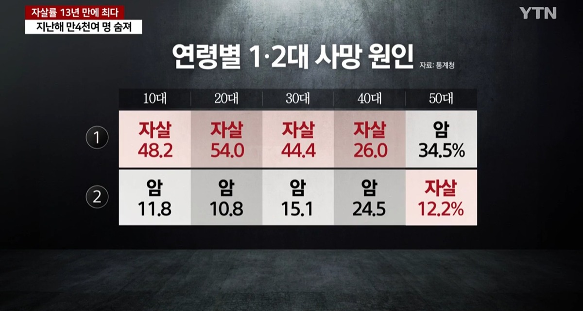 어제 발표된 40대 사망원인 1위 변경 소식..