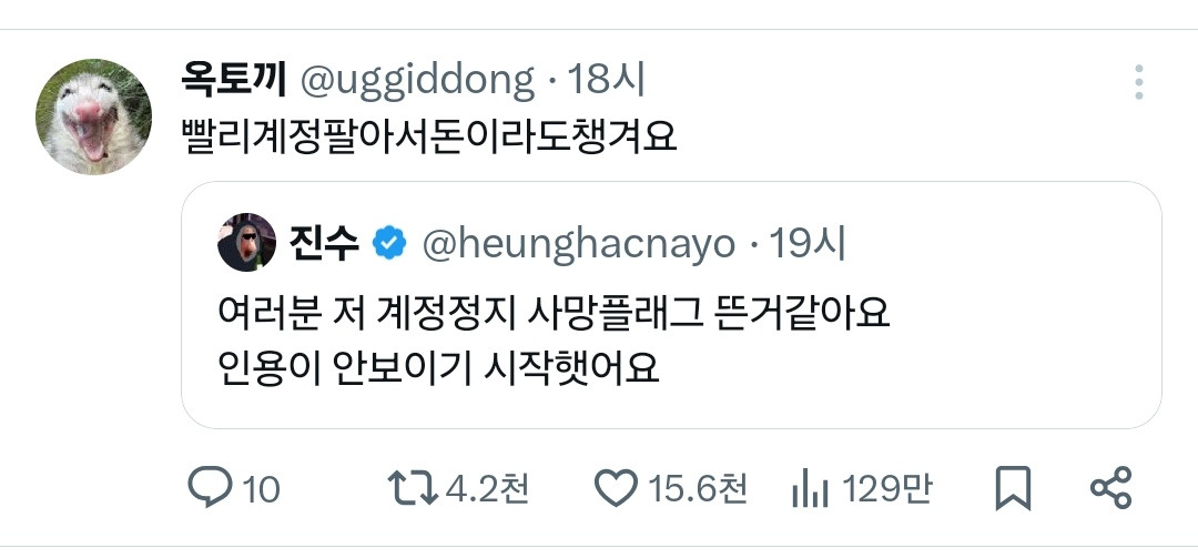 그런 진수에게 인용을 단 계정