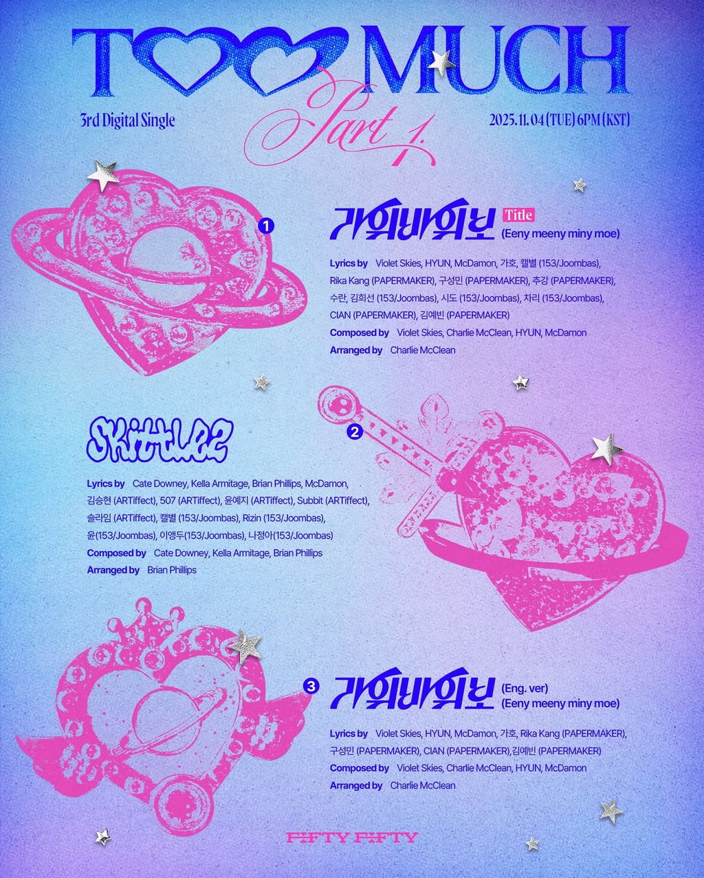 [흥미돋]피프티피프티 디지털싱글 [Too much part.1] highlight medley 작성자케이스바이케이스|작성시간25.10.28|조회수8,197 목록 댓글 11 글자크기 작게가 글자크기 크게가 출처: 여성시대 케이스바이케이스https://youtu.be/EVZq51wl9Jk?si=HcnpwQv5VN7wjWs0타이틀곡은 가위바위보 인듯 다음검색 현재 게시글 추가 기능 열기 북마크 공유하기 신고 센터로 신고 댓글 댓글 11 댓글쓰기 답글쓰기 댓글 리스트 작성자모두옳아 | 작성시간 25.10.28 얘네는 노래 진짜 얘네색이 있다ㅋㅋ 작성자내이름은유난 떨고있죠 | 작성시간 25.10.28 노래 개좋다 작성자겨울의태양 | 작성시간 25.10.28 귀여워ㅠㅠㅠ 작성자무조건무조건이야 | 작성시간 25.10.28 노래 귀엽다 피프티 더 크게 빵 떴음 좋겠어 작성자비키럭키비키 | 작성시간 25.10.28 ㅠㅠ늘 내벨소리ㅠㅠ 이번엔 또얼마나조을까 댓글 전체보기