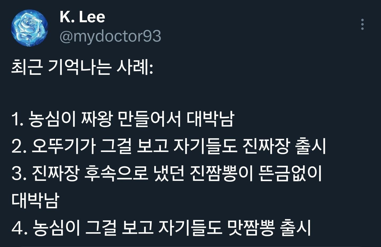 작성자항시 작성시간 25.11.08 맛짬뽕 진짜 맛있었는데 진짠뽕이랑 다른 맛인데 ㅠㅠㅠ 왜 단종이야 너무 아쉬워