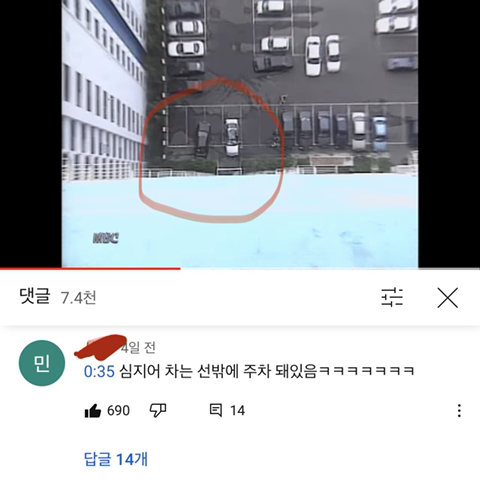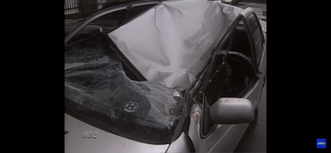 근데 마침 차 선을 가뿐하게 무시한채 주차된 차에 떨어져서