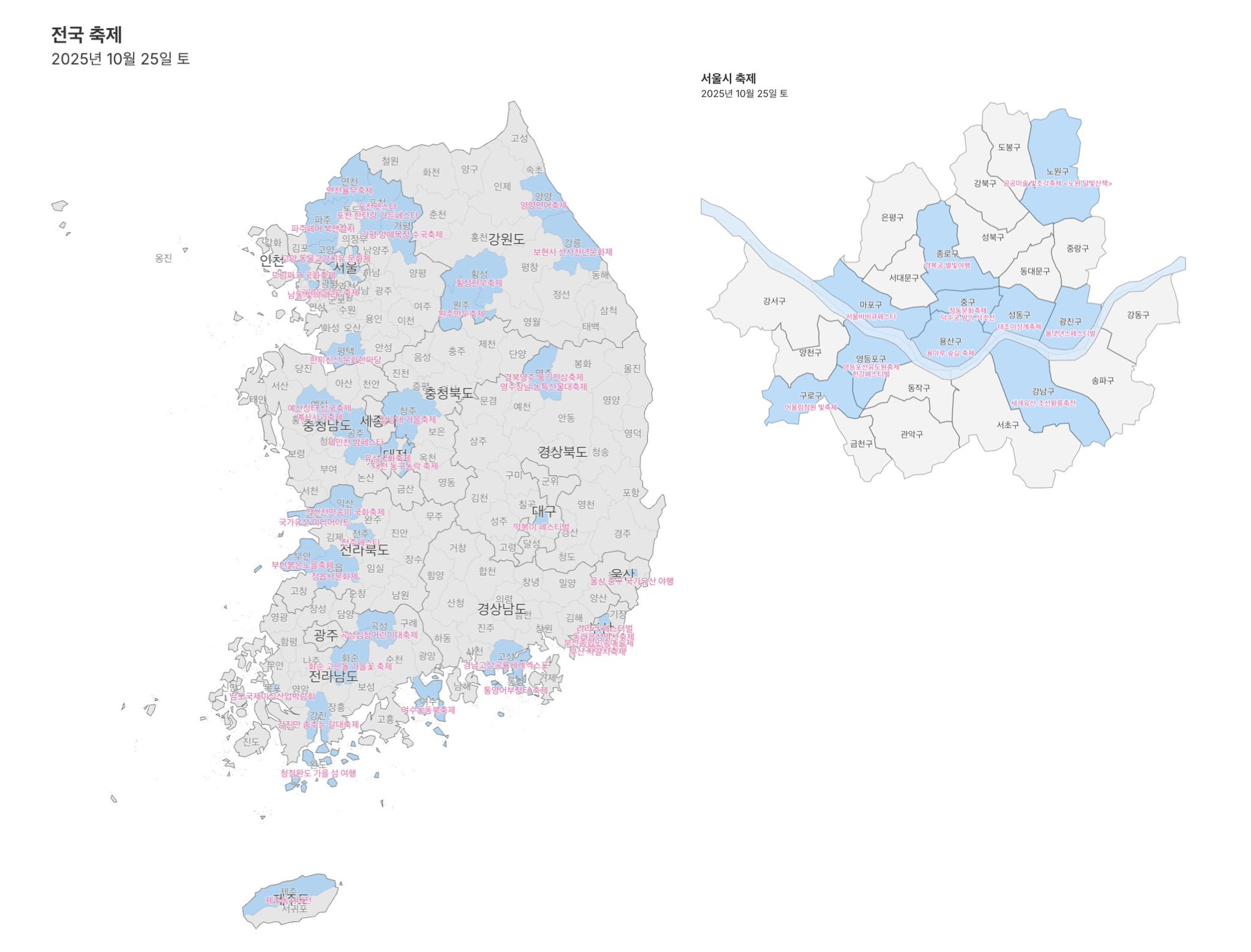 이번주 토요일(10.25) 전국 축제 지도 https://t.co/6evBGGKjfl pic.twitter.com/J0VtYGGx3o