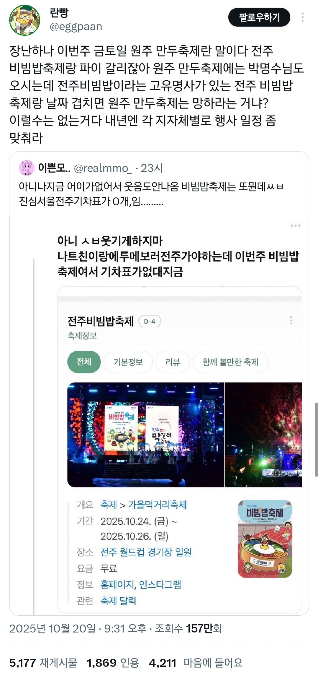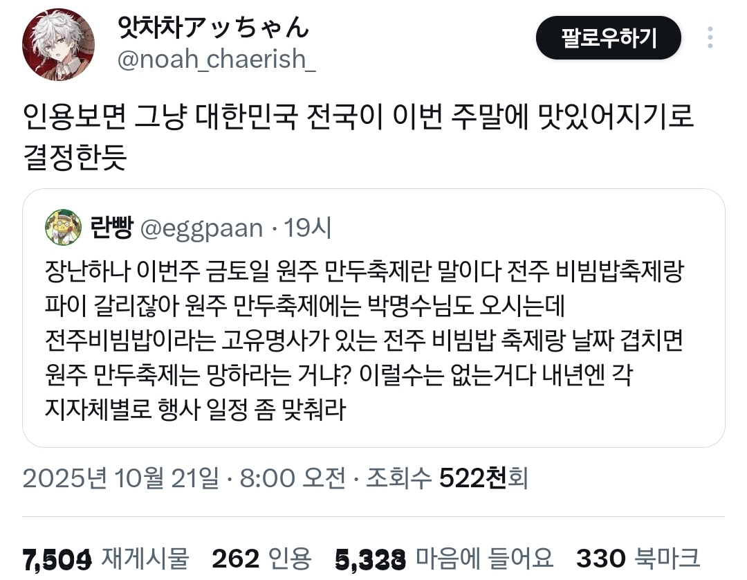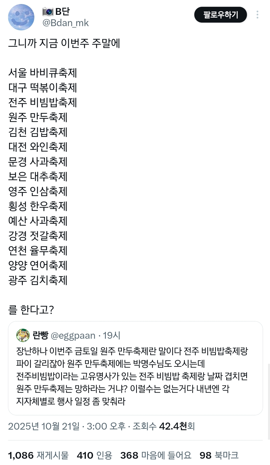근데 ㄹㅇ 지금이 딱 먹거리 축제 제철이긴함...