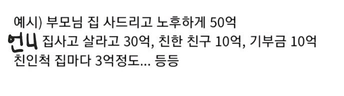 작성자조아짱조아 작성시간 25.10.30 아빠한테 10억주고 기부 10억하고 나머진 다 내꺼 친인척이랑 친구 왜줌