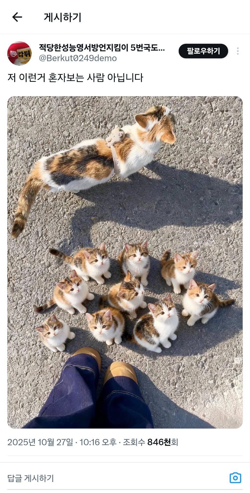 작성자비트켄슈타인 작성시간 25.10.28 어쩐지 9마리 너무 많기도 하고.. 9마리 전부 삼색이라 이상하다 했어.. 하지만 귀엽다