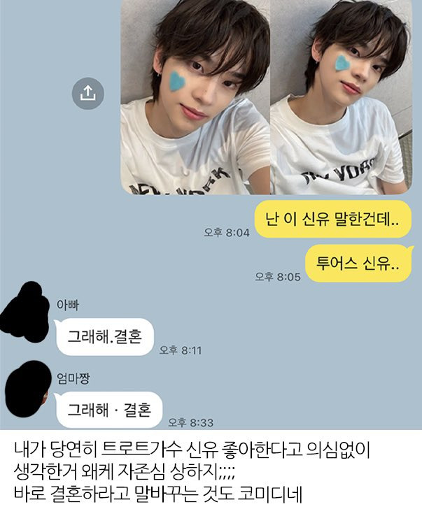 [흥미돋]엄마한테 투어스 신유랑 결혼하고 싶다고 했더니.jpg 작성자화나이귤스|작성시간25.10.28|조회수24,884 목록 댓글 35 글자크기 작게가 글자크기 크게가 출처: https://x.com/star_funny_/status/1980592293305618843 어어 그 신유도 인기 많긴 해;; 다음검색 현재 게시글 추가 기능 열기 북마크 공유하기 신고 센터로 신고 댓글 댓글 35 댓글쓰기 답글쓰기 댓글 리스트 작성자베니시오 델 토로. | 작성시간 25.10.28 아 ㅅㅂ 답장왤케웃기지 ㅋㅋㅋㅋ 작성자전기킥보드 아웃 | 작성시간 25.10.28 그래해 결혼 왜 두번이나 ㅋㅋㅋㅋㅋ 답댓글 작성자희먕 | 작성시간 25.10.28 아빠랑 엄마얔ㅋㅋㅋㅋㅋ 개웃기다 ㅋㅋㅋㅋㅋ 작성자흥청멍청하 | 작성시간 25.10.28 그래 햌ㅋㅋㅋㅋ 작성자qklzjzj09l | 작성시간 25.10.28 아 ㅋㅋㅋㅋㅋㅋㅋㅋㅋ웃기네 댓글 전체보기