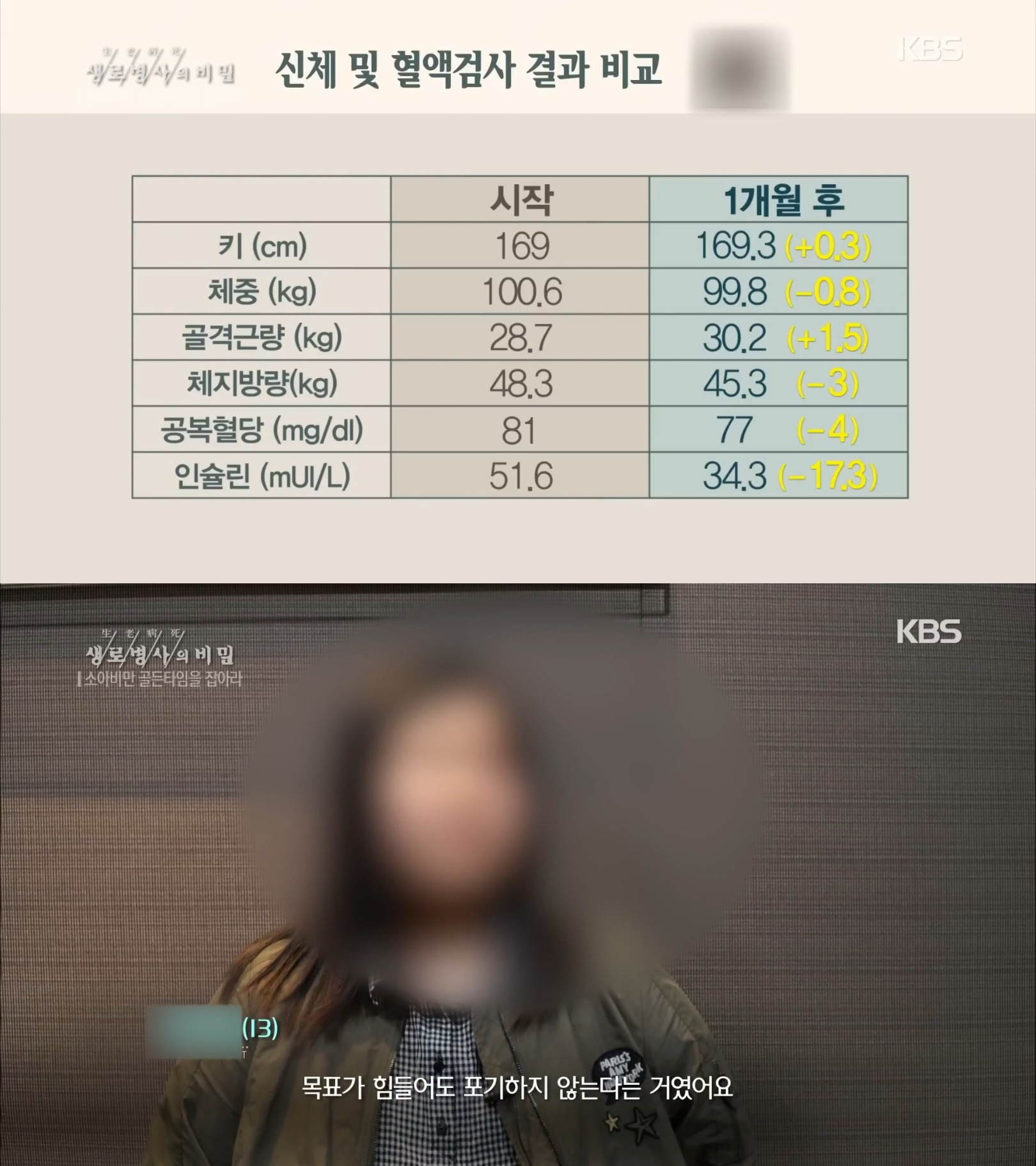 특히 근육이 늘었고 반면에 체중은 3kg이나 감량했다