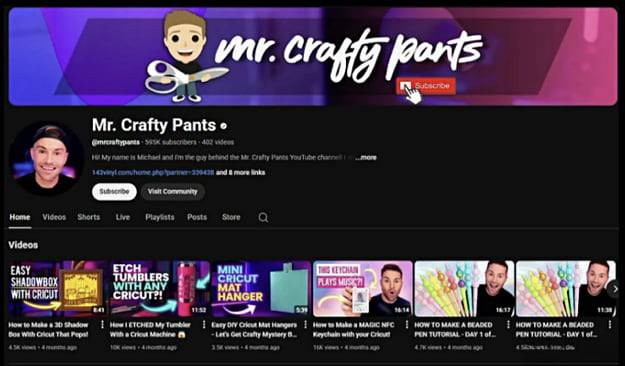 유튜브 채널 ‘Mr. crafty pants’에서 다양한 수공예품 제작 방법을 소개해 큰 인기를 끌어왔다.
