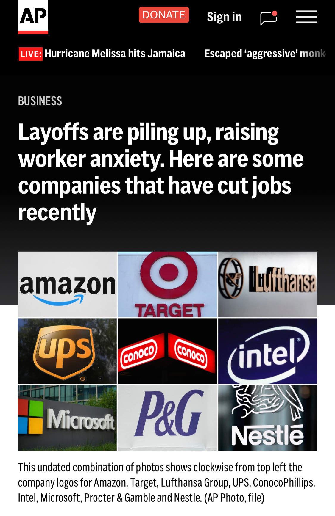 출처: https://apnews.com/article/layoffs-2025-amazon-ups-job-cuts-8413af9ac5b434b092ed76d6fa6cd196