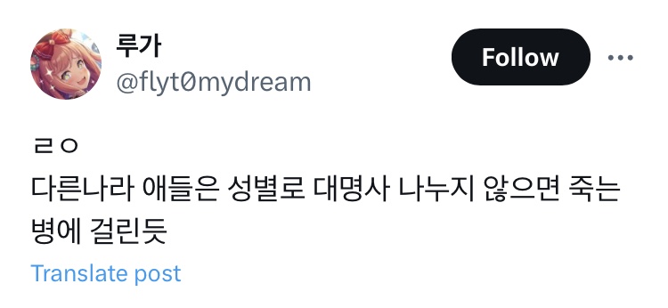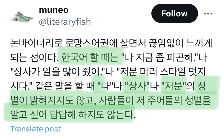 작성자포도락스 작성시간 25.10.29 미국더 그래서 요새는 모르는 사람은 they them 기본으러 하자나 베리굿임