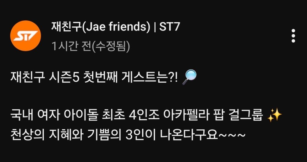 작성자앙버터푸딩 작성시간 25.10.29 ㅋ큐ㅠㅠㅋㅋㅋㅋㅋㅋ재친구하면서 여럿 구연예인들 많이나오는건 좋은데 재중 진행너무못해.. 품어줄수없어 미안해