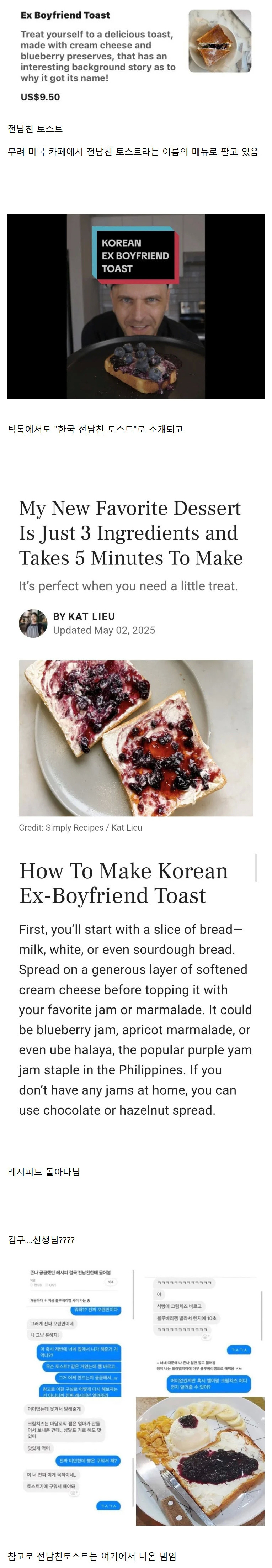 유행은 모르겠지만 미국에 전남친토스트가 수출(?)된게 신기함