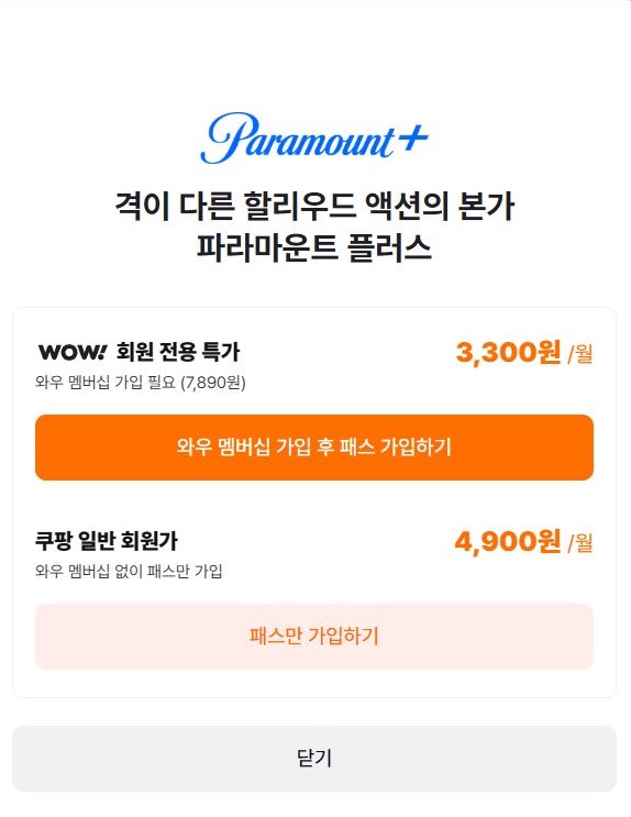 [쿠팡플레이] 파라마운트+ 전용 유료 패스 출시 예정 pic.twitter.com/Hu7HOoKtSM