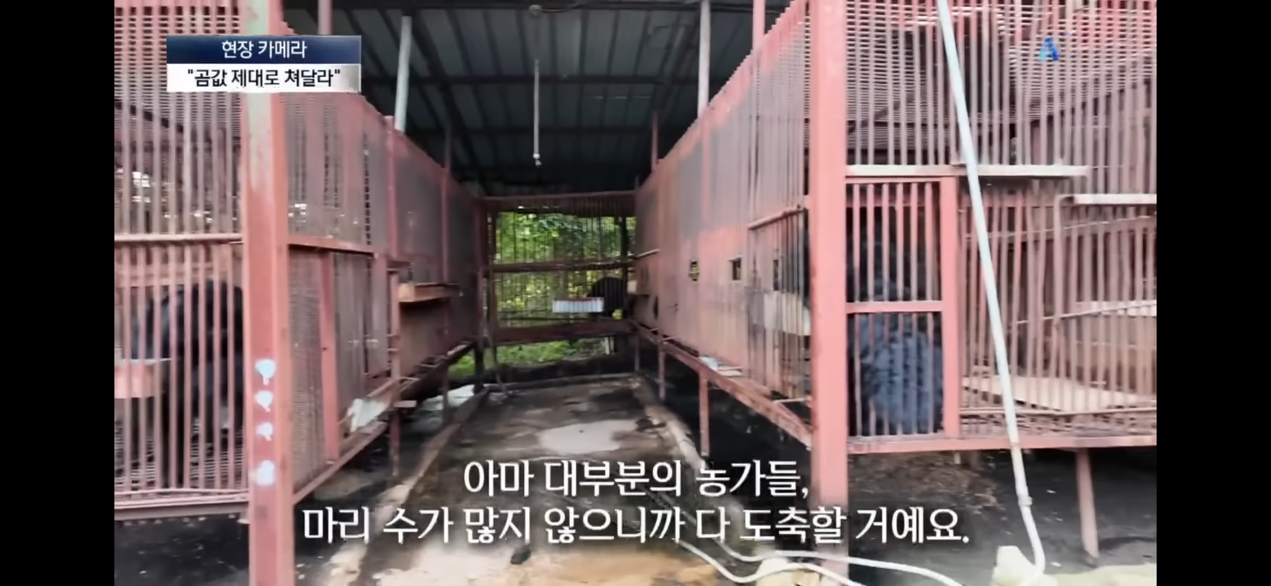 웅담채취를 위해 농가에서 기르는 곰이야