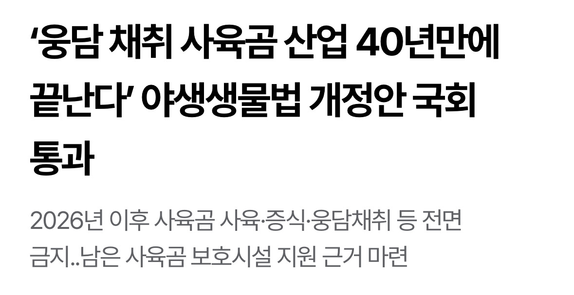 2026년 1월부터는 사육곰 사육이 불법이 됨