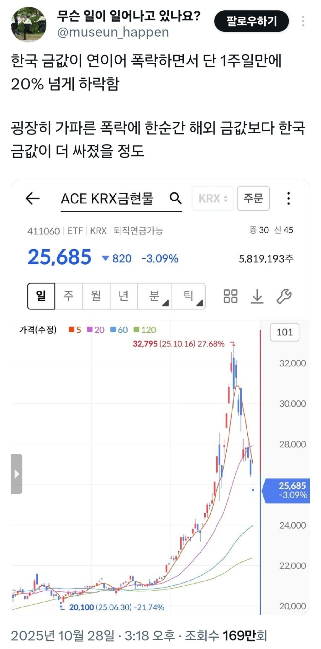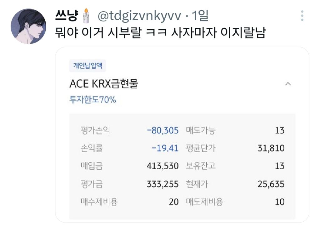 작성자요즘유행하는존투 작성시간 25.10.30 금 신탁으로 1그램 최고가에 삼