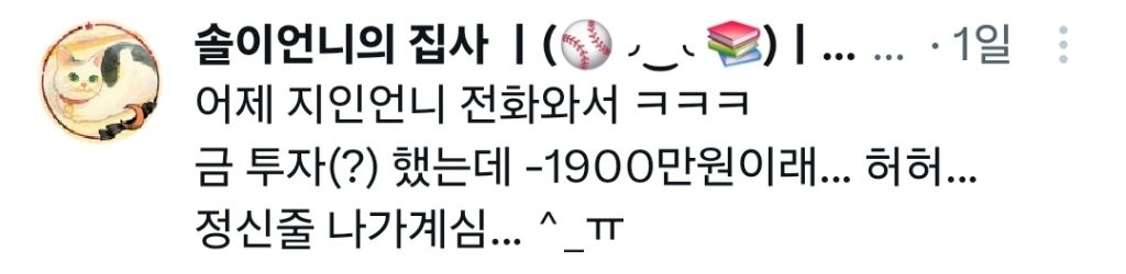 작성자혀키 작성시간 25.10.30 다뛰어들때사면고점 ㅠㅠ