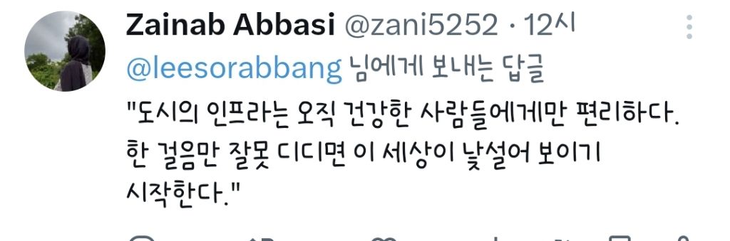 작성자posineva 작성시간 25.10.30 ㅣㄴ짜 인정..깁스만해도 진짜 느껴짐 보도블럭 울퉁불퉁하고..
