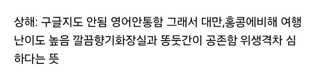 상해가 젤 좋았고 홍콩이 최악이었으 -