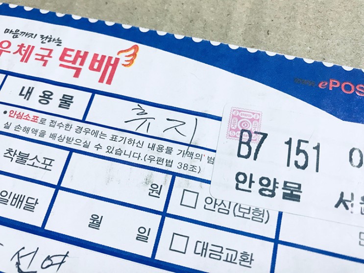 운송장에 쓰여 있는 아빠의 투박한 글씨를 보니 우체국에서 벌어졌을 상황이 그림처럼 그려졌다.