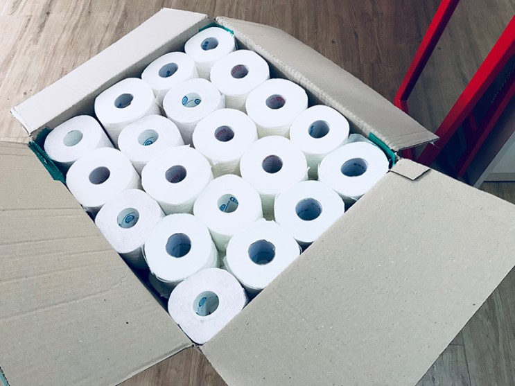 뒷간 휴지 주제에 3겹 도톰 엠보싱은 사치라며 2겹 재생휴지로 칸을 세서 사용한다는 상황을 눈치채신 걸까.