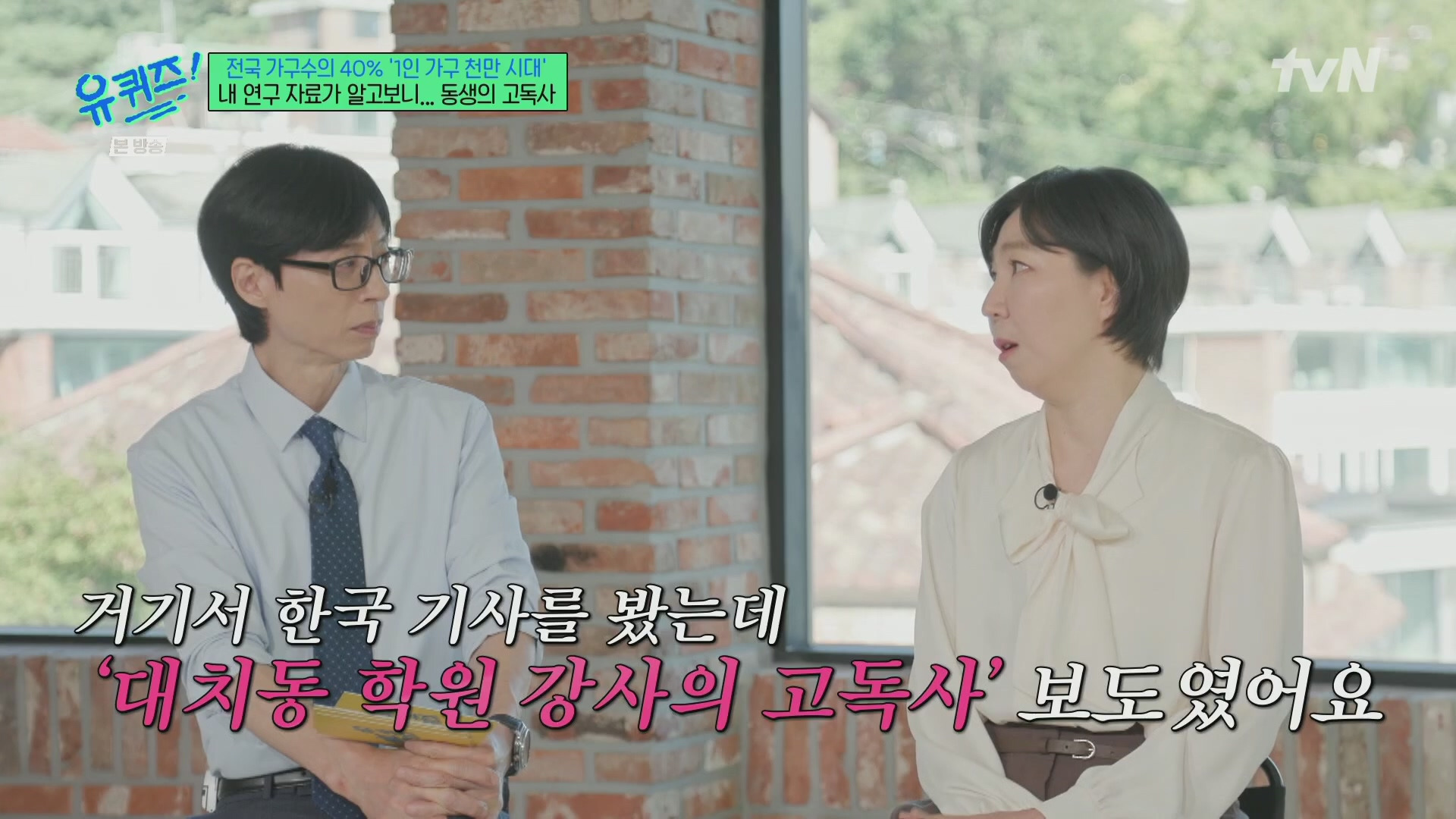 [흥미돋][유퀴즈] 1인 가구 천만 시대에 가족 이외의 관계도 법적 동반자가 될 수 있는 제도가 필요하다.jpg