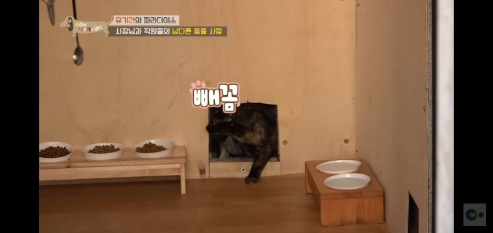 밖이랑 연결된 작은 통로로 길고양이들이 밥먹으러 들어옴