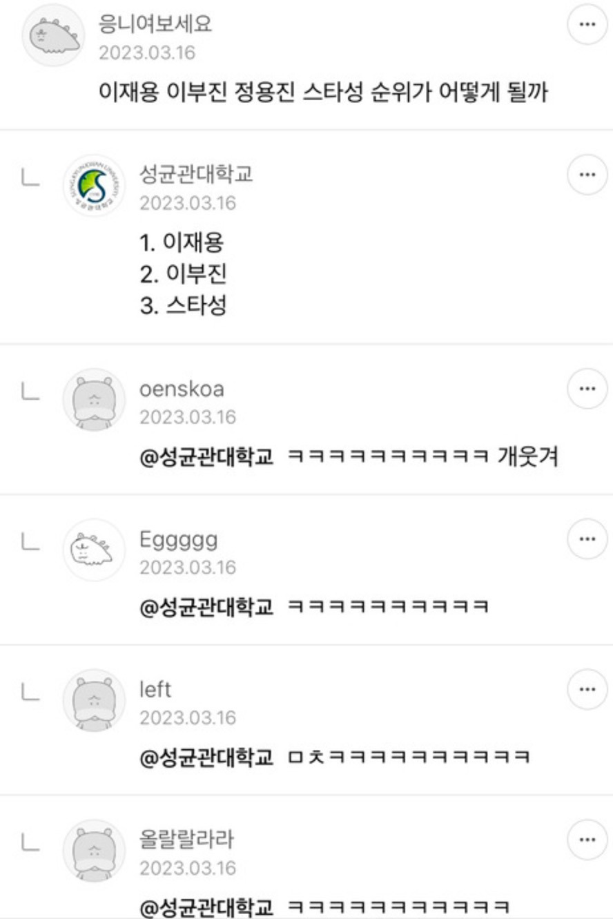 [스크랩] [흥미돋]이재용 이부진 정용진 스타성 순위 작성자이재는이재명|작성시간25.10.30|조회수17,274 목록 댓글 23 글자크기 작게가 글자크기 크게가 출처: 여성시대 non0 다음검색 스크랩 원문 : *여성시대* 차분한 20대들의 알흠다운 공간 현재 게시글 추가 기능 열기 북마크 공유하기 신고 센터로 신고 댓글 댓글 23 댓글쓰기 답글쓰기 댓글 리스트 작성자이쟤명 | 작성시간 25.10.30 천재다 진짜 작성자장탄일성선조일본 | 작성시간 25.10.30 ㅋㅋㅋㅋㅋㅋㅋㅋㅋㅋㅋㅋㅋㅋㅋㅋㅋㅋㅋㅋㅋ 작성자하이쿠키 | 작성시간 25.10.30 ㅋㅋㅋㅋㅋㅋㅋㅋㅋㅋㅋㅋ 작성자열한시 반 이후에 목격시 자라고해줘 | 작성시간 25.10.30 역시 세종대왕 동문은 머가 달라도 다름 작성자백수가체질잉대여 | 작성시간 25.10.30 아 ㅋㅌㅊㅋㅋㅋㅋㅋㅋㅋㅋㅋㅋㅋㅋ도른 ㅠㅋㅋㅋ 댓글 전체보기
