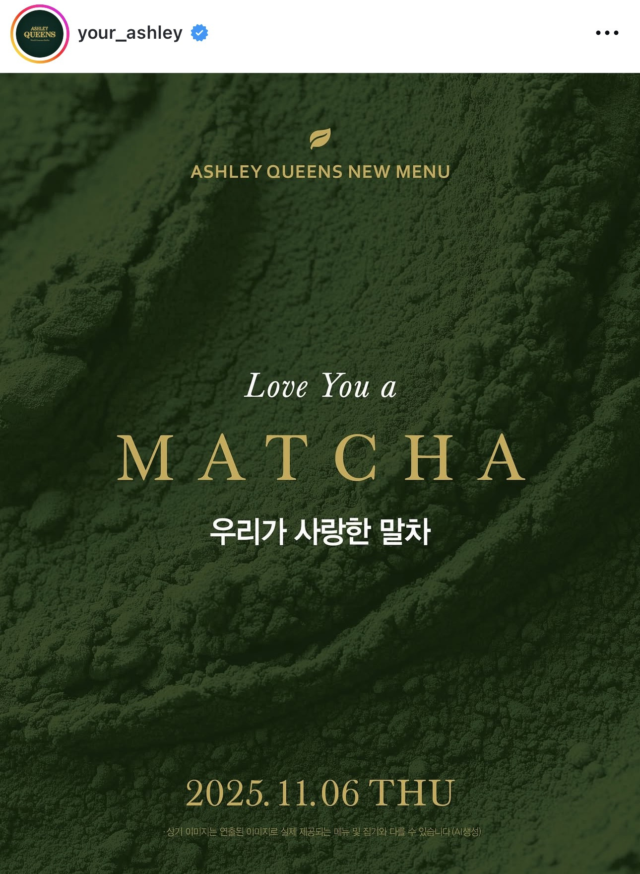[흥미돋]11/6 출시하는 애슐리 말차 라인업 (feat.AI) 작성자바나나스플릿구슬|작성시간25.10.30|조회수35,962 목록 댓글 44 글자크기 작게가 글자크기 크게가 출처: 여성시대 바나나스플릿구슬 다음검색 현재 게시글 추가 기능 열기 북마크 공유하기 신고 센터로 신고 댓글 댓글 44 댓글쓰기 답글쓰기 댓글 리스트 작성자녹차라떼에샷추가요 | 작성시간 25.10.30 조지러가야지 작성자빵떡면 | 작성시간 25.10.30 쇼트케이크 단면 ㄹㅇ 스펀지같다 작성자고양이털로뜨개질하기 | 작성시간 25.10.30 가고싶다 작성자우람한 여시 | 작성시간 25.10.30 애슐리 다니는 사람 나야나.. 작성자아는개 힝 | 작성시간 25.10.31 미쳤다.. 댓글 전체보기