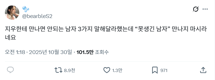 남돌이 못생긴 여자 만나지 말라했음 난리 났을텐데
