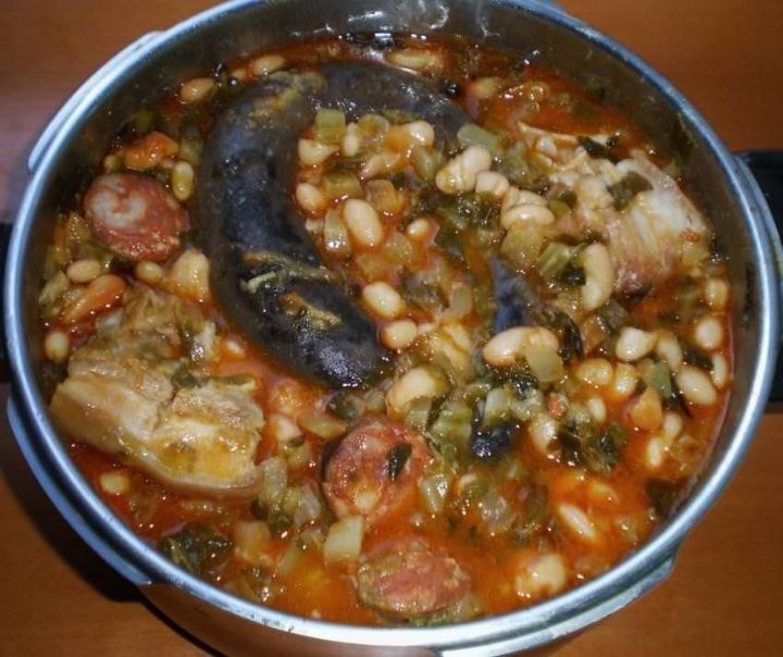 염장고기나 집에서 키운 닭이나 소세지 등을 넣어 끊이기도 했고 콩이나 잎야채들을 넣어 끓이기도 했음.