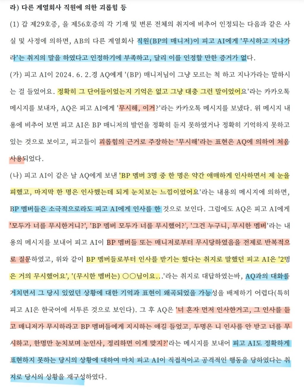 작성자기아타이가즈 작성시간 25.10.31 저걸로 괴롭힘을 주장하는건 너무 말이 안됐음ㅜㅜ난 다른 사건이 더 있는줄 알았어...딱 저거하나로 직괴를 따질 순 없지