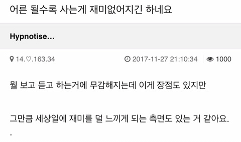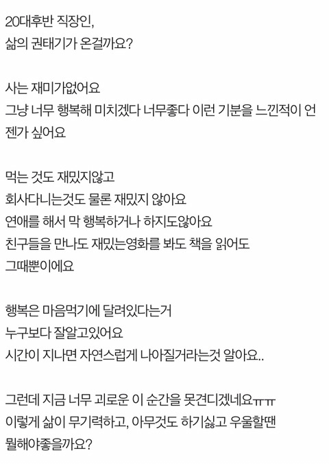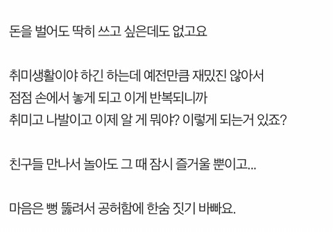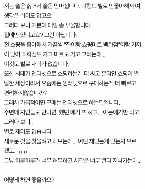 바로 "사는게 재미 없다" "뭘해도 재미가 없다"