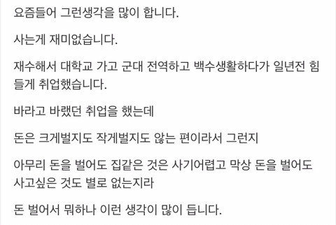 일이나 회사 생활은 원래 재미없는것이라 쳐도