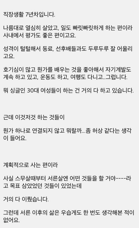 작성자하늘색심장 작성시간 25.10.31 사람들이 인생이 재미없어서 삶에 이벤트를 만들기 위해 결혼을 하고 애를 낳는건가 싶었음.. 근데 결론은 스포츠를 해야돼
