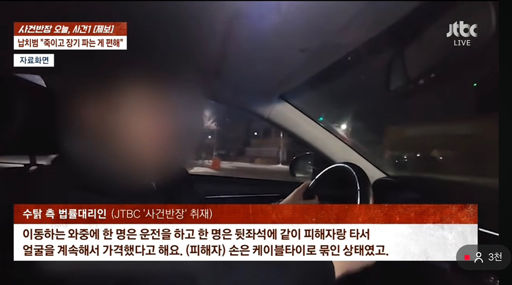 송도에서 금산까지 끌고갔고 금산중에서도 가로등도 없고 외진 야산같은 곳이었다고