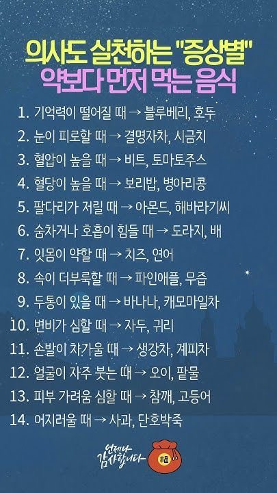 [흥미돋]의사도 실천하는 "증상별" 약보다 먼저 먹는 음식 작성자acute|작성시간25.10.31|조회수4,089 목록 댓글 1 글자크기 작게가 글자크기 크게가 출처: 여성시대 acute시금치랑 호두를 많이 먹어야겠다 .... 다음검색 현재 게시글 추가 기능 열기 북마크 공유하기 신고 센터로 신고 댓글 댓글 1 댓글쓰기 답글쓰기 댓글 리스트 작성자매실청 | 작성시간 25.10.31 변비엔 역시 푸룬ㅋㅋㅋㅋ 댓글 전체보기