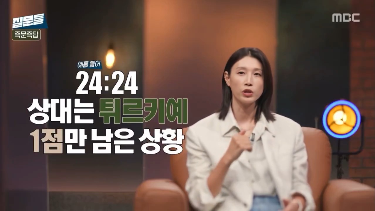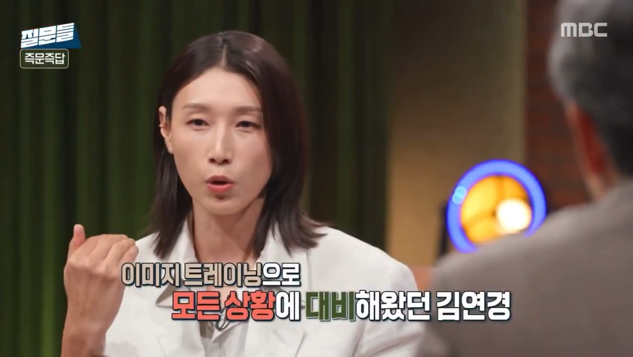 김연경 : 제가 과정을 되게 중요시한다고 했잖아요? 근데 그 과정 속에서 저는 준비가 다 되어 있습니다. 모든 상황에 대해서. 그래서 '내가 어떻게 이 경기에 임해야지' 라고 계속해서 시뮬레이션을 저혼자 돌리기 때문에 (예를들어) 24대 24, 상대는 튀르키예, 이 상황에 왔을 때 '나는 어디로 공략을 해야지'가 이미 이미지트레이닝으로 트레이닝이 되어있고, 그런 상황에서 좀 긴장을 좀 덜 하고 그 상황을 잘 극복하지 않았나..