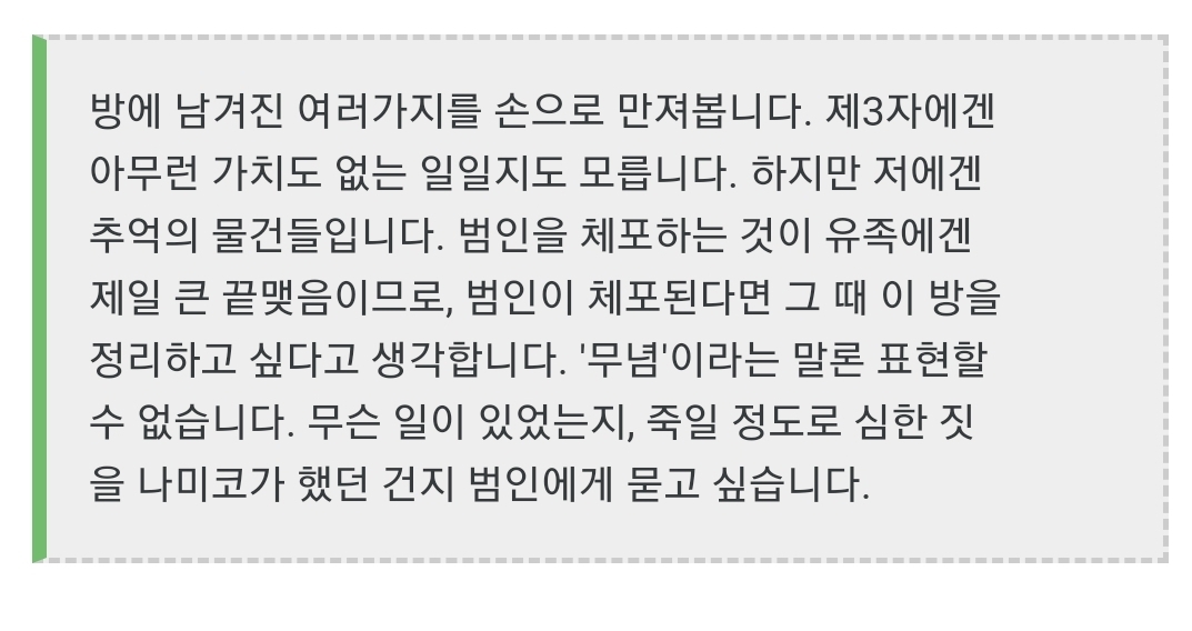 느끼고 있었고 이 분노가 살인의 동기였던 걸로 보인다.