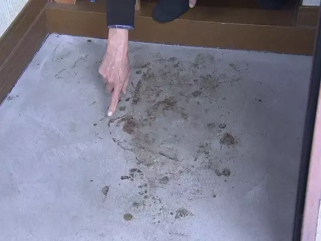 경찰은 피해자 아파트의 현관 깔개에서 피가 묻은 족적을 발견했다.