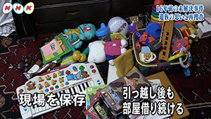 현관 정면 복도에서 거실 쪽으로 세입자인 나미코가 쓰러져있는것을 발견했다.