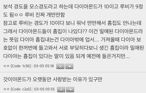 작성자맘맘먀 작성시간 25.11.01 다이아도 경도가 높은거지 강도가 높은건 아니라서.. 4정도밖에안댐 에메랄드는 내포물 유무로 천연 합성 구별하는데....