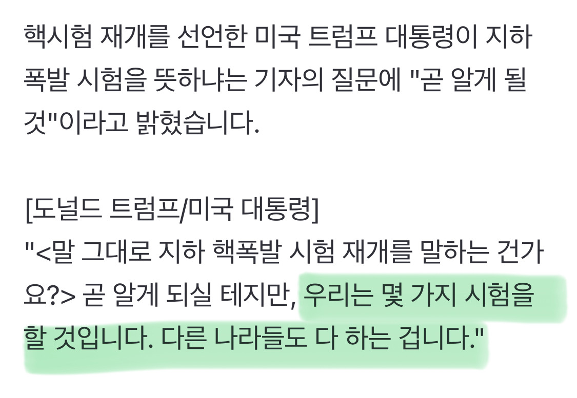 [여시뉴스데스크]트럼프, 지하 핵시험 질문에 "곧 알게 될 것" 작성자(본인닉네임).|작성시간25.11.01|조회수2,374 목록 댓글 4 글자크기 작게가 글자크기 크게가 출처: https://n.news.naver.com/article/214/0001458850?sid=104 다음검색 현재 게시글 추가 기능 열기 북마크 공유하기 신고 센터로 신고 댓글 댓글 4 댓글쓰기 답글쓰기 댓글 리스트 작성자조실세 | 작성시간 25.11.01 ???? 뭐야뭐야 또 뭔데 미친놈아 작성자윈디웬디 | 작성시간 25.11.01 또뮤ㅓ하냐 작성자냥르장머리 | 작성시간 25.11.01 이 노망난 할배가 작성자마루는500살 | 작성시간 25.11.01 트갈배 대가리속에서 이미 핵폭탄터진듯 댓글 전체보기