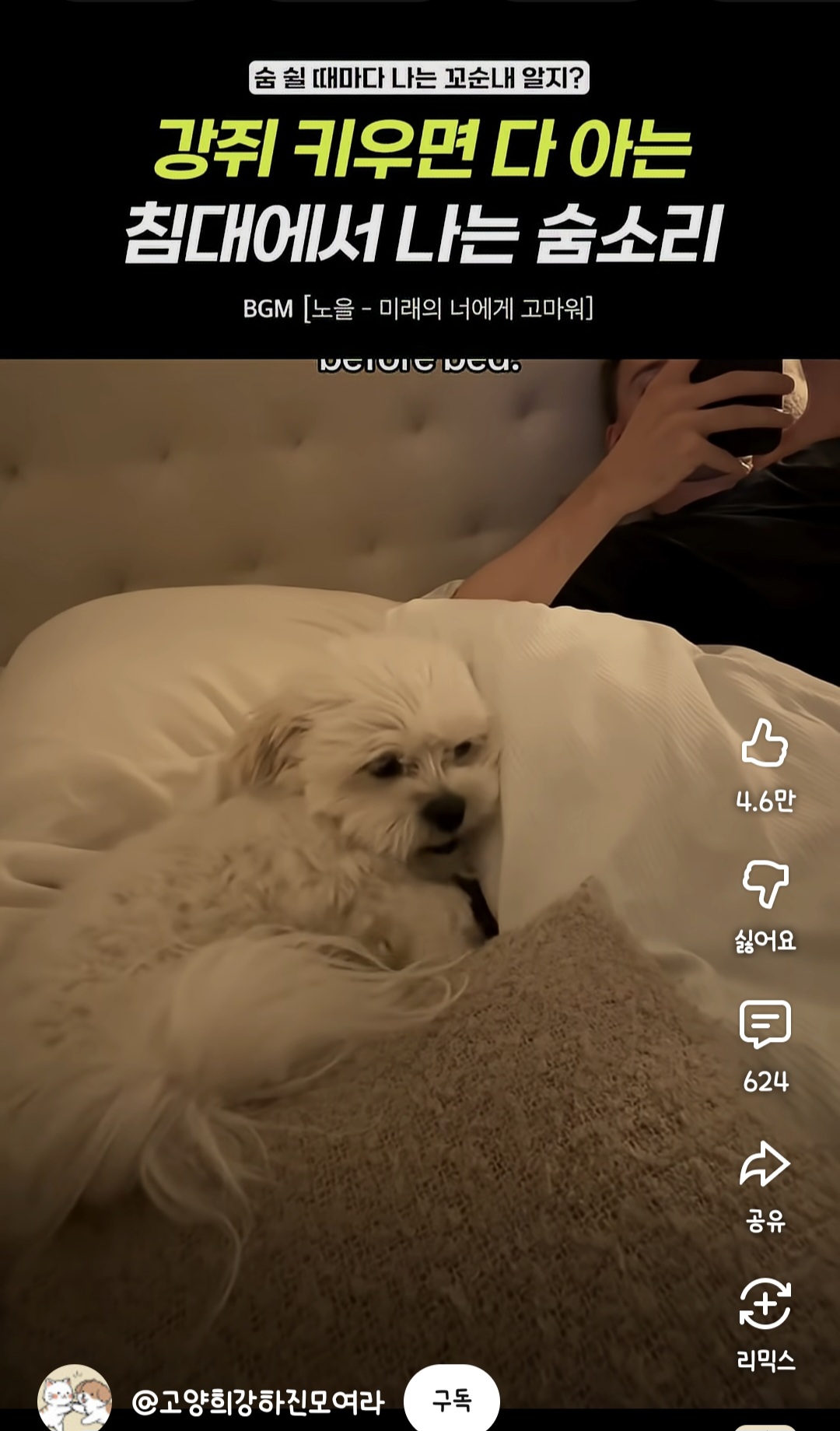 [힐링]강쥐 키우면 다 안다는 침대에서 나는 숨소리 작성자빵먹는고양이|작성시간25.11.01|조회수18,855 목록 댓글 45 글자크기 작게가 글자크기 크게가 출처: https://youtube.com/shorts/0qKwFEw7bu4?si=Ck2WSIF7jA_rYHgH쩝쩝 🥺🥺🥺🥺 다음검색 현재 게시글 추가 기능 열기 북마크 공유하기 신고 센터로 신고 댓글 댓글 45 댓글쓰기 답글쓰기 댓글 리스트 작성자머더미스터리처돌이 | 작성시간 25.11.01 고영이두 나는뎅 작성자킴폴 | 작성시간 25.11.01 이놈들아 브금좀 꺼라 작성자전제 | 작성시간 25.11.01 침대에 강아지 있으면 저 비지엠도 같이 들린다는 말인가요? 작성자고고마빵 | 작성시간 25.11.01 개꼬수와 작성자hawwah | 작성시간 25.11.02 댓글 전체보기