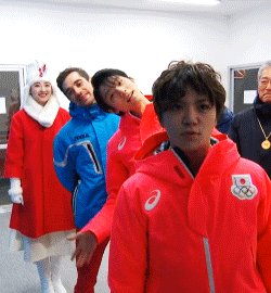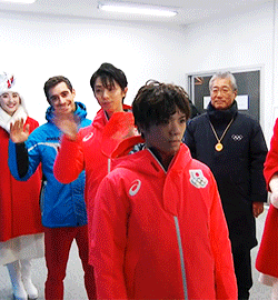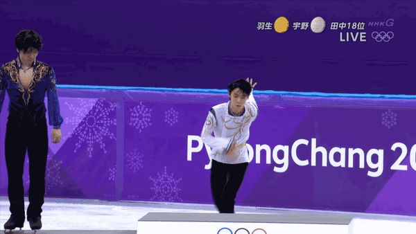 메달받으러 올라가기 전 기분 최고로 좋은 하뉴와
