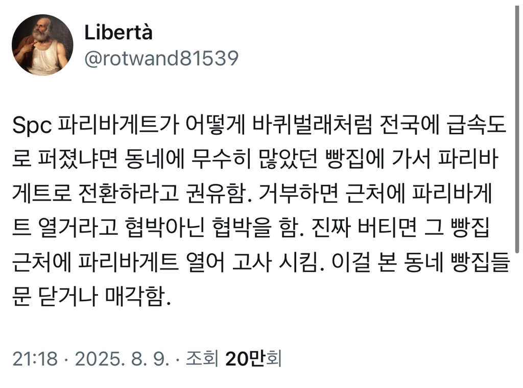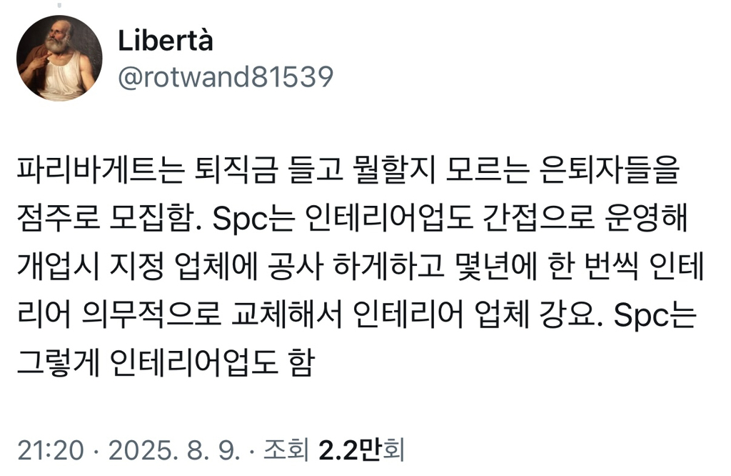 작성자빵처럼구워져지내는게아주습관 작성시간 25.11.02 spc불매자인데 인천공항 전부 spc잖아.. spc거르려고 헤매다 들어간 구석 카페조차 영수증보면 결국 spc이던...